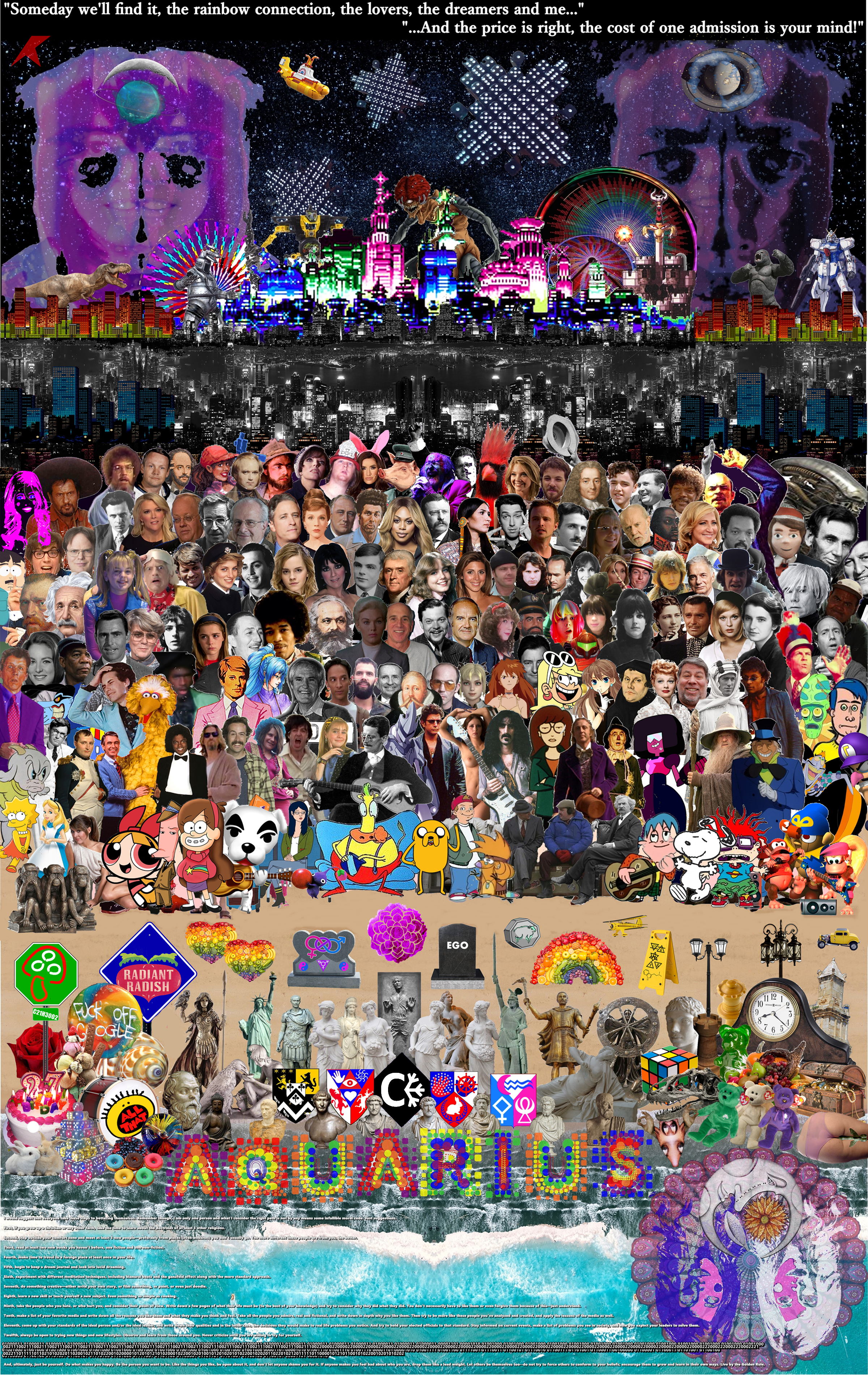 This is the big one, which took many hours of on-again, off-again work over several weeks. I was inspired by the cover art for the Beatles’ Sgt Pepper and Frank Zappa’s parody on We’re Only in it for the Money. I wanted to do that kind of group shot but with the members of the crowd consisting of people or characters that are meaningful to me. The foreground has been changed from an outdoor picnic to a beach-front because, as I said in my desk post, I love the beach. I added a background cityscape for the same reason.