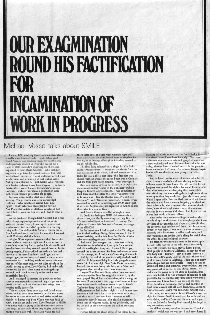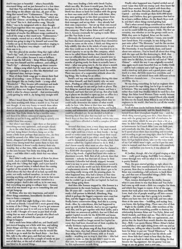 Cassandra, if you should ever compile these essays of yours into the SMiLE Bible everyone is *still* hankering after, this would surely top any list of sources on the subject.