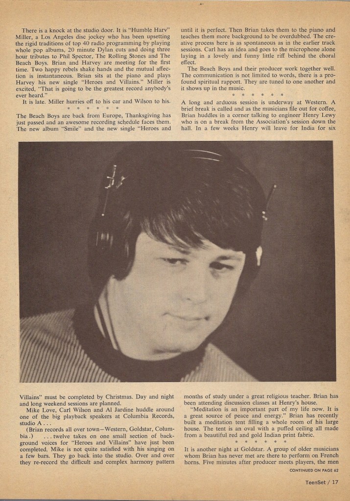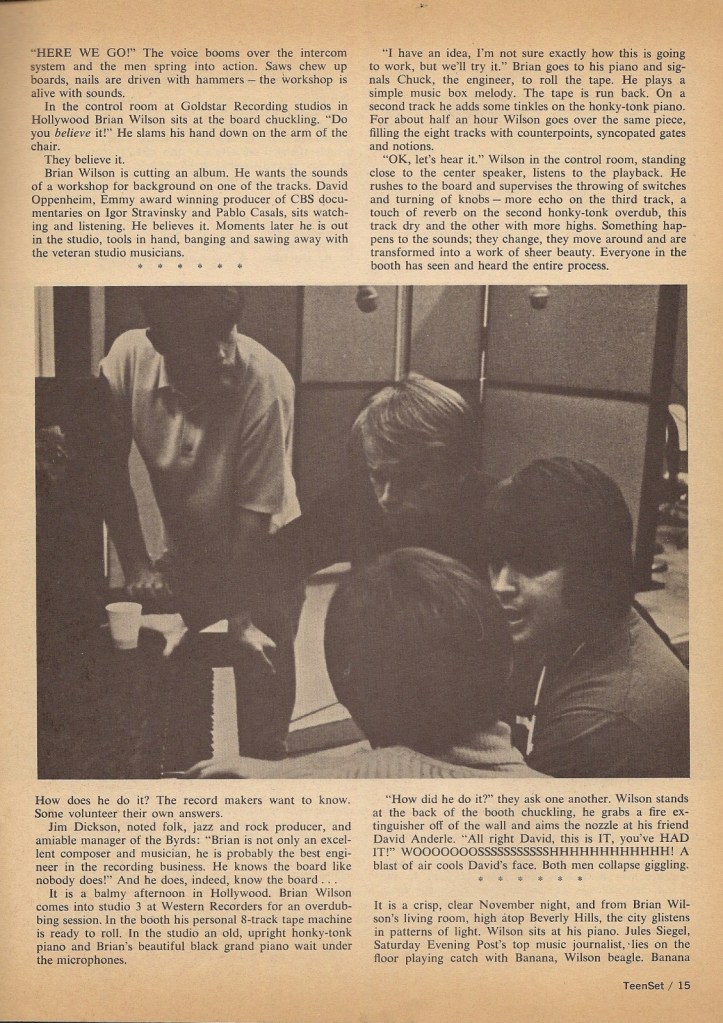 Luckily I made screen-captures of the Vosse Fusion interview, the Vosse Teen Set Promo and Anderle Crawdaddy article because they seem to be very hard to find on the internet these days. I will include them below as well, along with all remaining Brian Wilson/Beach Boys photos I had kicking around on my hard drive.