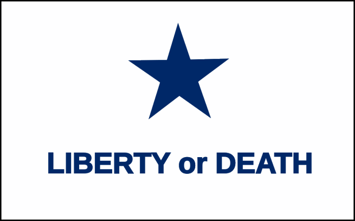 The Troutman Flag, created during the struggle for Texan Independence and another lesser used banner that symbolizes American defiance against real or perceived tyranny.
