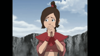 So, I like Ty Lee because she’s really naive and happy go lucky: flirting with a member of the enemy, telling someone “I really admire your confidence!” after they just orchestrated a hostile takeover of the government, etc. Anyway, so this lowkey, blink-and-you-miss-it moment was cute because her two best friends have reached an impasse and she’s scared for both of them. It’s one of only two scenes in the whole series where we see Ty Lee lose that trademarked sunny disposition. There’s this quick cutaway to her cowering in the corner like a kid whose parents are fighting and she is unsure how to react. It’s the moment I perceived Ty Lee to be more of a fleshed out person as opposed to a goofy tertiary antagonist, and that in turn made me think about how she was too pure of heart to get mixed up in this crazy war and royal family melodrama.