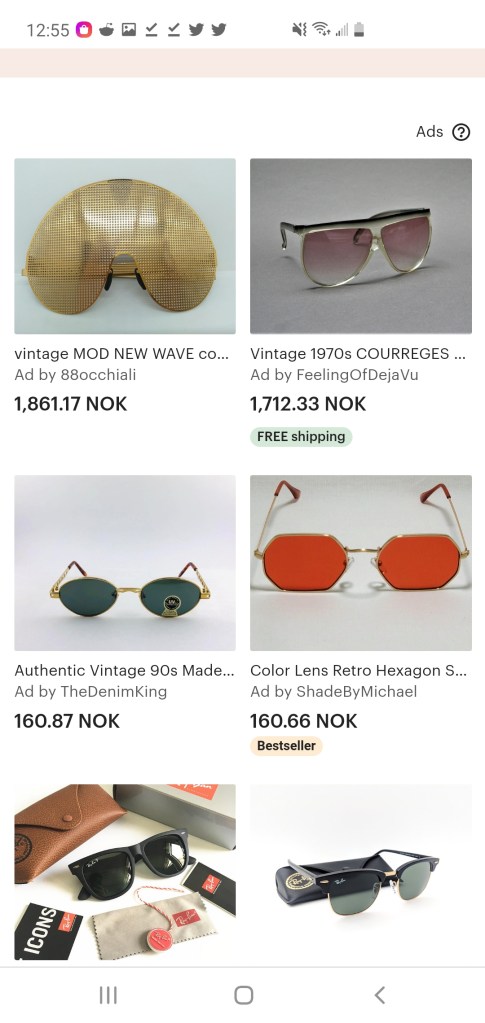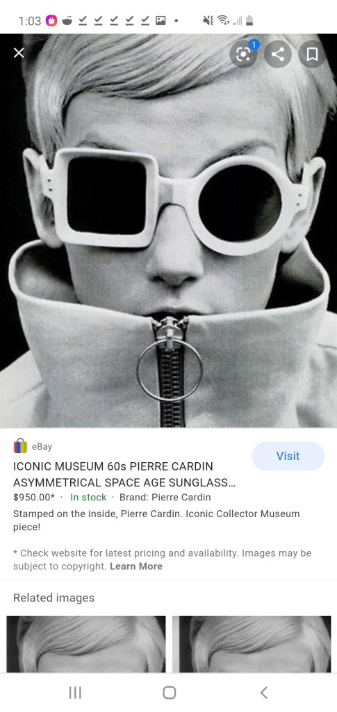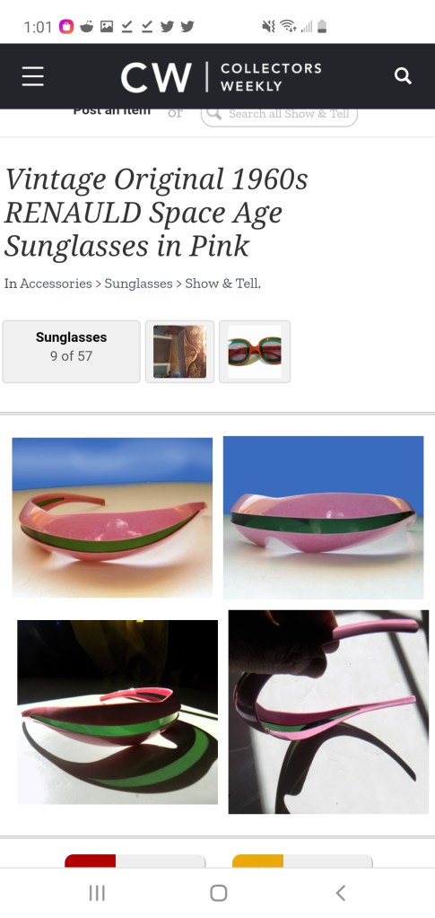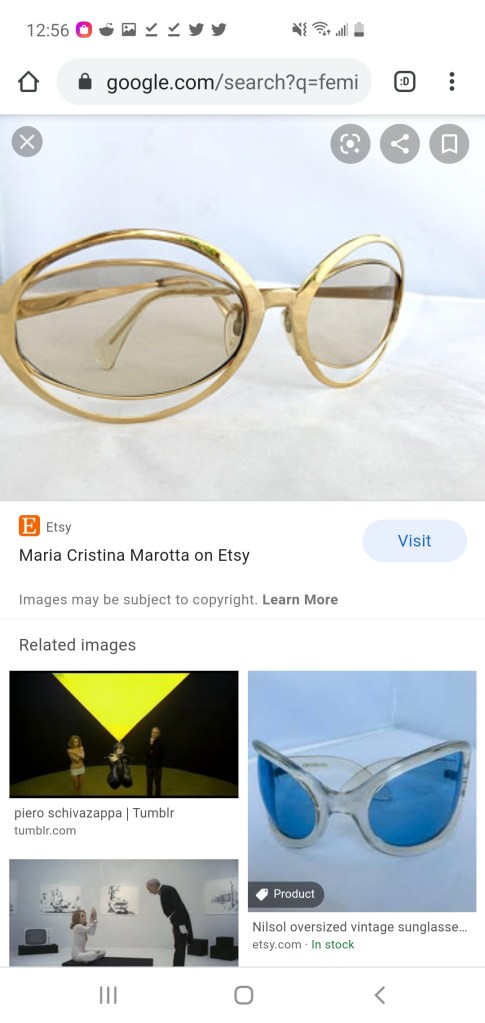 I was trying to find a pair of sunglasses to match those worn by Maria at the end of Femina Ridens. I came upon this other awesome designs, largely from the ’60s.