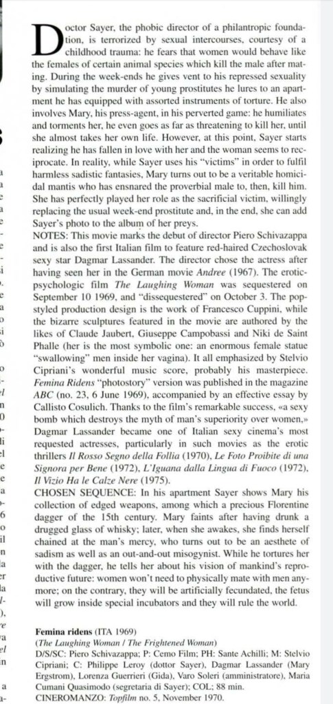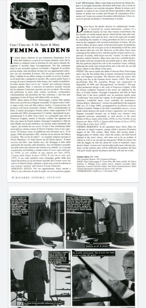 Speaking of which, I recently came upon scans of an out of print book Psychopathia Sexualis in Italian Sinema which included a brief expose on Femina Ridens, complete with behind the scenes pictures.