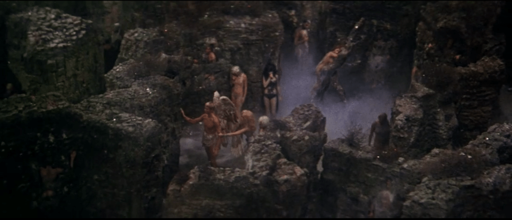 But later, when the Black Tyrant asks Pygar “what do you think of when you make love to Barbarella?” Remember that he answered “an angel does not make love, an angel is love.” (Pygar also seemed uninterested in sex with the Black Tyrant, despite the fact that she was clearly trying to seduce him, indicating that he’s not big on sex–unless it’s with the right person.) I used to think Pygar was referring to himself, but that doesn’t really make sense with the other context clues of the film. Specifically, this line is repeated when Barbarella enters the Chamber of Dreams, just before she and the Black Tyrant are engulfed by the mathmos. The two remain unharmed, and the Black Tyrant explains “the mathmos is protecting itself from your innocence.” (Or words to that effect.) These two clues, taken together, prove that Barbarella is a person of uncommon, undiminished goodness. She is the embodiment of pure love–in essence, an angel.