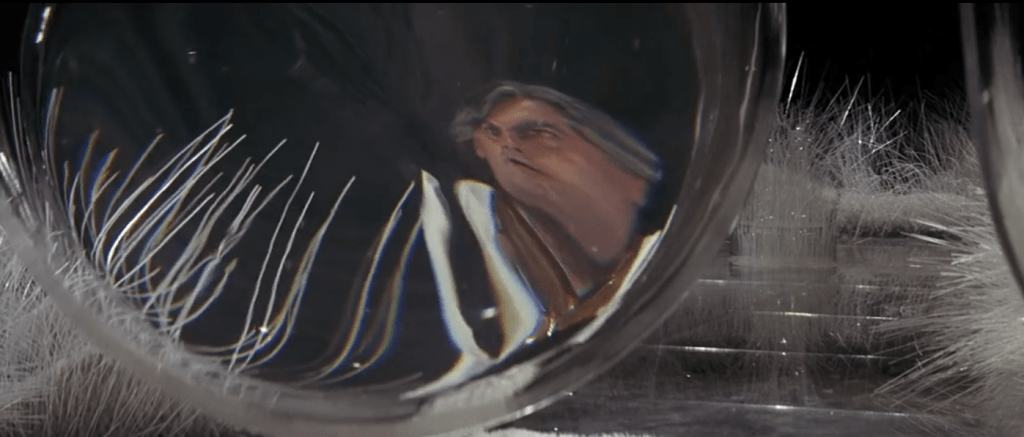 From the opening credits, Barbarella wants you to know that this isn’t your (stereo)typical male-dominated, sterilized, pretentious Science Fiction. This is something far more flashy, with a distinctly feminine energy and tongue in cheek sense of humor. It’s one of the most arresting beginnings to any film I’ve ever seen, not only because of Jane Fonda’s beauty but the novel premise of psychedelic space faring. If the sunshine pop title song didn’t give it away, Barbarella’s mission brief with the President of Earth should make it clear that this is a future where the ’60s counterculture never ended. Mankind makes love not war: so much so that weapons are an unthinkable concept and people greet each other by saying “love.” Humanity has shed its old puritanical hangups about sexuality. We can surmise this from Barbarella’s lack of shame to appear before the President nude, as well as his nonchalant reaction. Rather than leading us to a world of debauchery, removing all stigma towards our natural urges has actually created a more innocent, kindhearted populace.