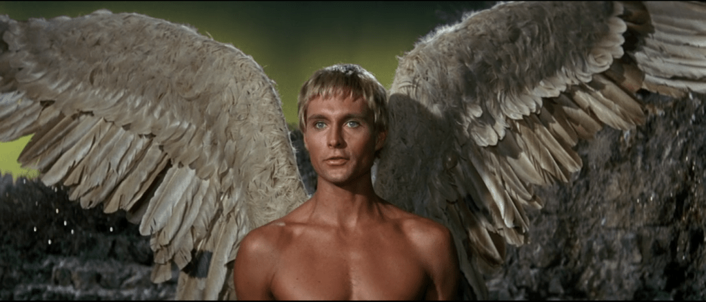 This is the “extra dimension” of the film which jumped out at me after last month’s viewing. While we’re meant to think that Barbarella had sex with Pygar, what if she actually didn’t? Or at least, perhaps that wasn’t what lifted the angel’s morale again so that he regained the will fly.