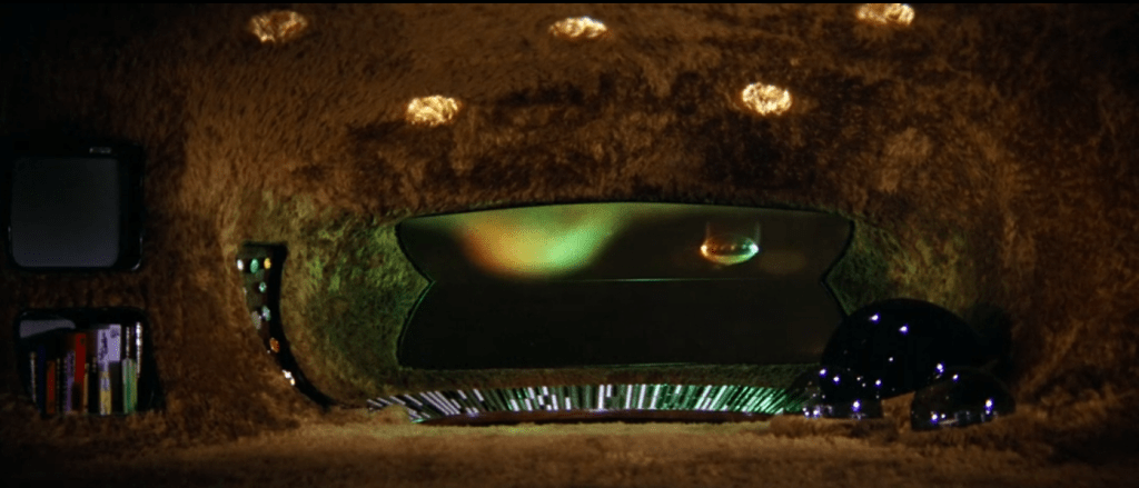 One of the design philosophies of Star Wars which gets a ton of praise is its decision to create a “lived in” galaxy. That is to say, the ships and locations aren’t made of sparkling chrome as though they just rolled off the assembly line. Instead, the equipment has scruff marks, unpolished surfaces and imperfections, the same way most of our cars would in any parking lot. But what I’ve always wanted to know is: would anyone actually want to live in that galaxy? The ship interiors are purely utilitarian and devoid of any creature comforts or personalized touches, for example. With Barbarella, for the first time, a movie made me feel as though humanity not only explored the stars, but had gotten good enough at the process to make it comfortable. Look at our protagonist’s wonderfully decorated spaceship, with wall to wall shag carpeting, classy artwork to gaze at, and even a walk-in closet full of clothes! Her navigation computer (Alpha 7, affectionately dubbed “Alfie”) speaks in the voice of a dignified English butler rather than a monotone drawl, and it even sings to wake her up at one point. The filmmakers actually made me believe Barbarella had designed the ship herself. One imagines every space-faring vessel in this timeline must be similarly personalized to the user’s unique sense of style. (And damn, does Barbarella have good taste!)