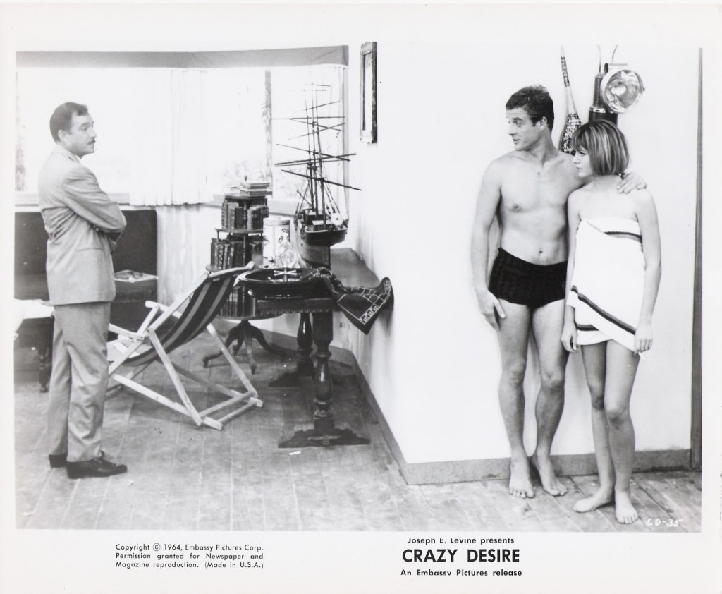 I found out that Catherine Spaak and Ugo Tognazzi made a movie together called Crazy Desire (1962). Since they’re my current celebrity crushes, I decided I had to check it out. For those who don’t know, Spaak played the lead in The Libertine, and she’s spellbindingly beautiful in it. Tognazzi played The Catchman in Barbarella, and he is the most perfectly handsome, rugged older man archetype that was ever put on this Earth. A love story between the two of them is a one-in-a-million coincidence that seems divinely crafted specifically for my unique tastes.